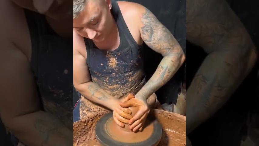 Zkušený profesionální hrnčíř, dělá hrnec na hrnčířském kruhu.