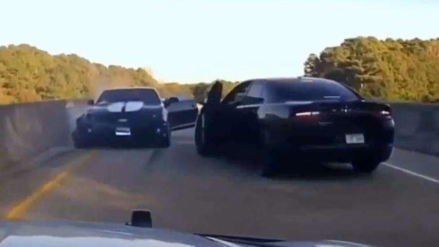 Řidič Chevroletu Camaro v USA se nedokázal vyhnout hlídkovým vozům, které ho pronásledovaly. Pohybující se vysokou rychlostí, při výjezdu z rychlostní silnice velmi rychle ztratil kontrolu nad vozem.