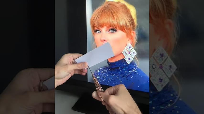 Umělec z Georgie vytváří portrét zpěvačky Taylor Swift.
