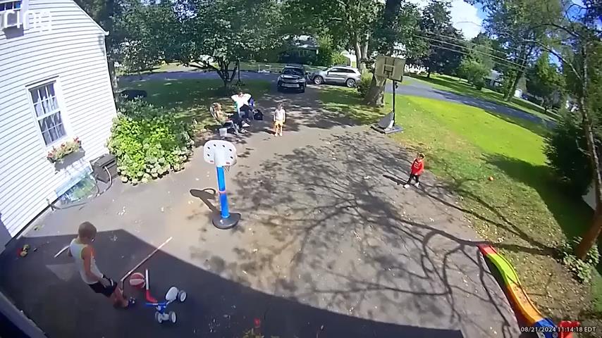 Obyčejné příjemné odpoledne před domem s dětmi v americkém státě Connecticut. Rodinu navštívil černý medvěd, který pomalými kroky procházel zahradou.