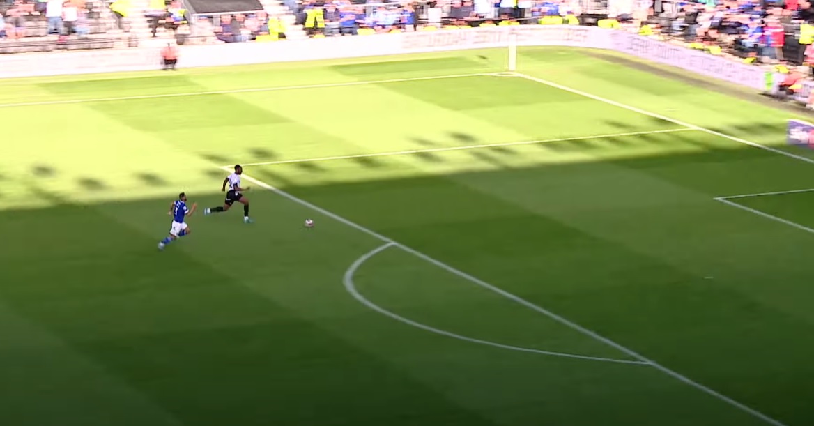 V sobotu 14. září při zápase mistrovství v Anglii, Ebou Adams z Derby County chybuje před prázdnou brankou proti Cardiffu.