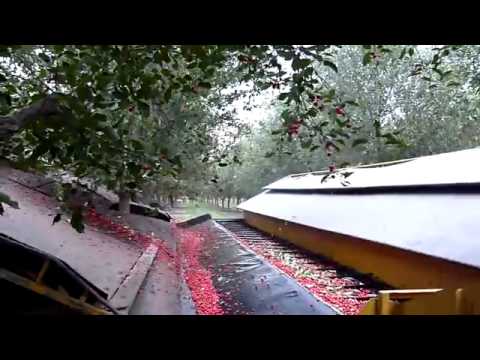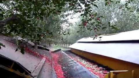 Sklizeň třešní 'chytrými' zemědělskými stroji ve městě Payson, USA.