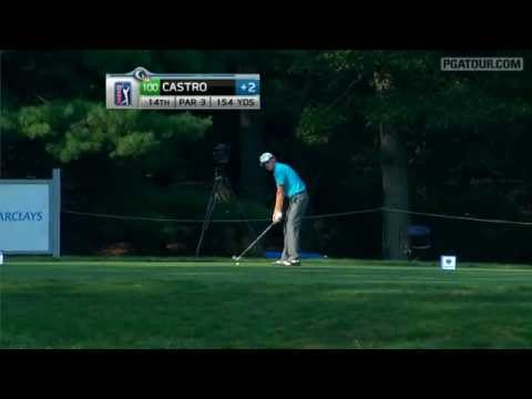 Během druhého kola Barclays golfového turnaje 2012, Roberto Castro posílá míč přímo do jamky s hodem 147 metrů!