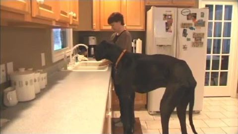 Zeus' (Zeus) jako pojmenované vlastníci, je pes plemene Německá doga (Německá doga), mající výšku 1,118 metrů a nově zapsané v Guinnessově knize rekordů jako nejvyšší pes na světě.