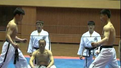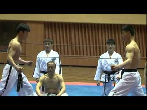 Vzrušující demonstrační skupinou Taekwondo sportovci v Severní Koreji