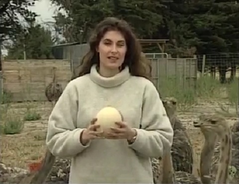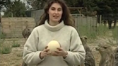 Reportér BBC Maria Veronese se marně snaží udělat reportáž o farmě pštrosi na Novém Zélandu.