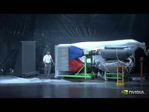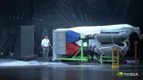 Jamie Hyneman a Adam Savage z Mythbusters Ukázat obrovský stroj, který střílí kuličky a malovat Monu Lisu v rekordním čase. To vše v rámci Nvision Show pořádané Nvidia Corporation.