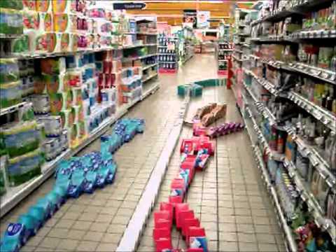 Zaměstnanci v obchodě Francie vytvořil obrovské Domino během své noční směny.