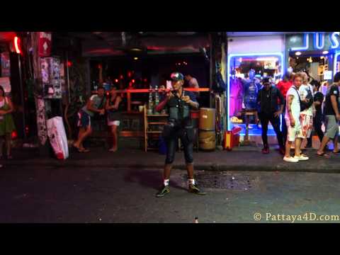 Thajsko Pattaya City, talentovaný žonglér baví turisty na ulici.