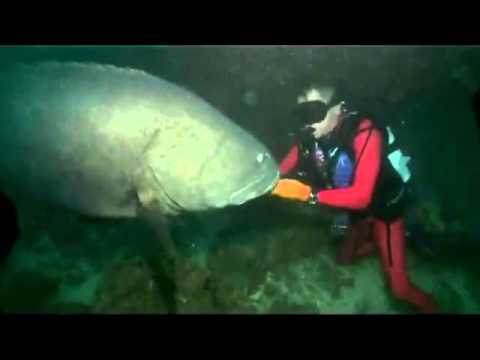 Potápěč narazí obrovský okoun v Indo-Pacifiku, uzavřít v Austrálii.