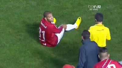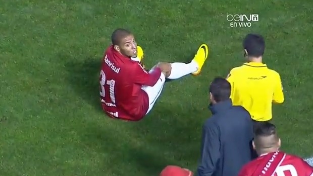 19letý fotbalista brazilský Internacional Maurides, podvrtnutí kolene trpěl jako panigyrize první cíle ve své profesní kariéře. A na horní!