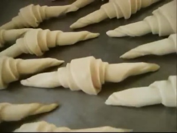 Vincent Baker Talleu dělá ručně Croissant ve své dílně.