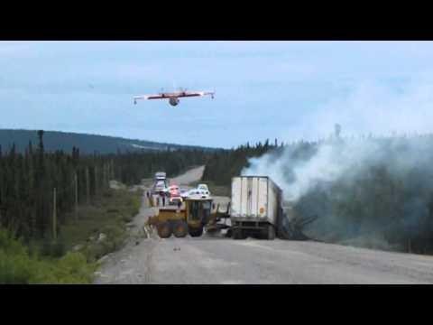 Něco, co moc často nevidíme – je povoláno hasičské letadlo, aby uhasilo požár vážné nehody v Kanadě.