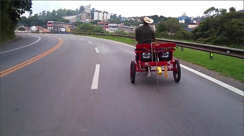 Tento farmář v Brazílii má rozvinuté vozík s koněm z budoucnosti.
