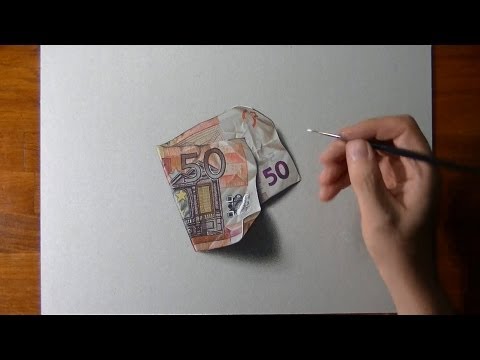 Realistické znázornění bankovky 50 eur italského umělce Marcello Varenghi. Nabídka pro ty, kteří si stěžují, že není vidět ani malované.
