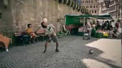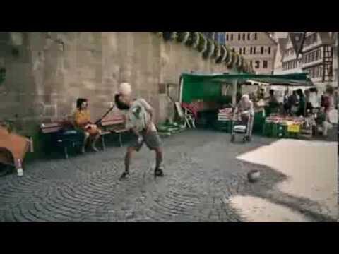 Šílený dovednosti s míčem o mladé městské ulice Tubingen, v Německu.