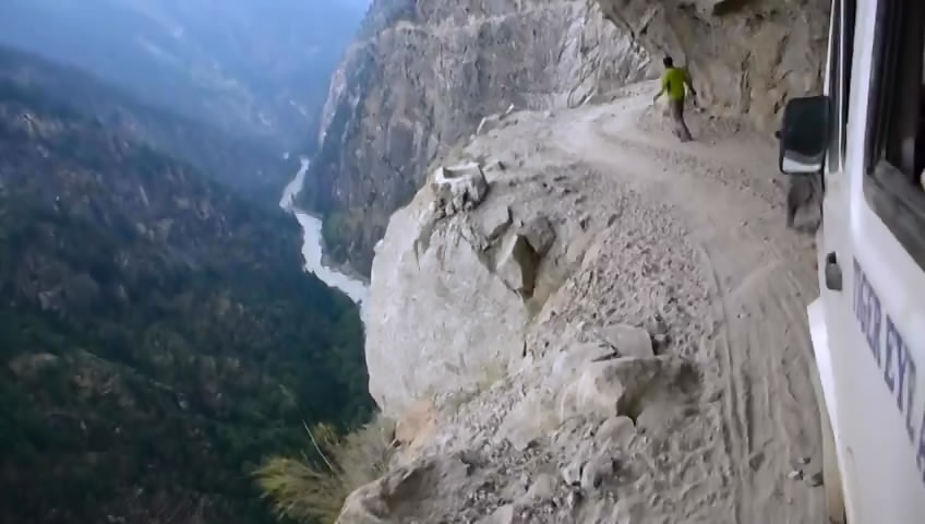 Turisté cestující v jistém velmi nebezpečné v himálajských horách, spojující regiony a v Indii Killar Gulabgarh. Trasa nabízí děsivý pohled, Zatímco silnice pak prochází pod vysoký vodopád.