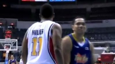 V závodě pro filipínské basketbalové ligy, Willie Miller oklamat dva soupeři po tzampol a dosahuje velmi snadné vozík.