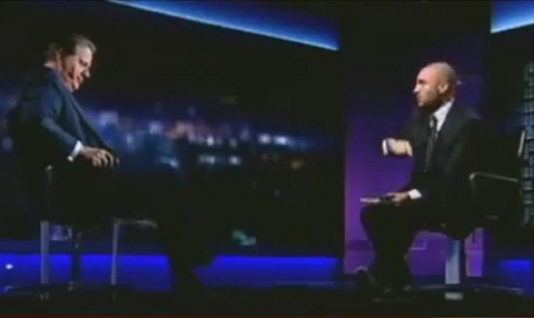 Constantine Bogdanos v okamžicích nesmírné inteligence, šílený. Nahoru Byron Polydoras otevřít pobyty s pusou. – Výňatek z pořadu „Hellenic Frenia“