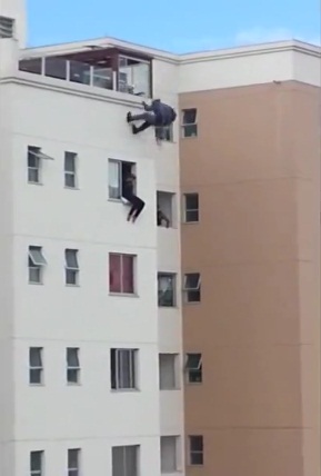 Belo Horizonte město Brazílie muži hrozí spáchat sebevraždu z okna budovy. Co jsem ale nevěděl, je, že POLICAJT je přímo nad ním a poke do budovy tím, že brání nepříjemně končí.