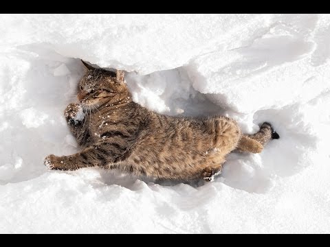Srandovní kočky hrají ve sněhu