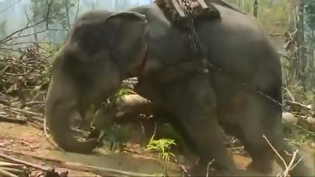Video, které vysvětluje obsedantní výcvik slonů v Thajsku, s ohledem na jejich využití v dopravě dřeva a cestovní ruch.