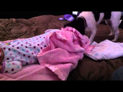 Psí péče dítě 10 měsíců, přikryl ho dekou.