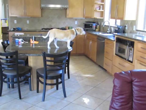 Lucy, psí plemeno Beagle, vymyslí plán chytit nagkets lákavé kuře z trouby.