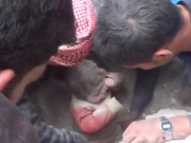 Toto video, Vložil syrští aktivisté, Zdá se, že označení skupiny záchranné dig zoufale zachránit uvězněné dítě v Aleppu, Po bombardování vláda. Poté, co slyšel výkřiky, když hledali přeživší, Skupina mužů hrabali zoufale až Uložit batole.
