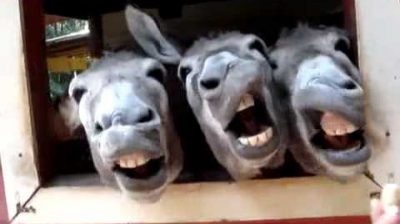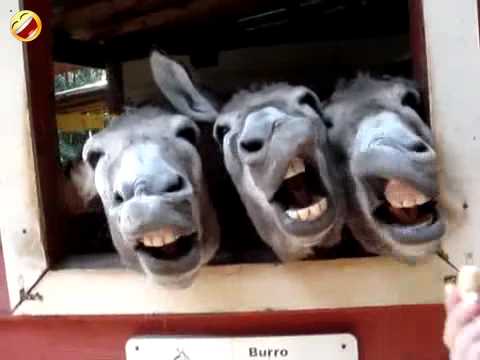 Čtyři osly grimasy legrační čekání s touhou pochoutka.