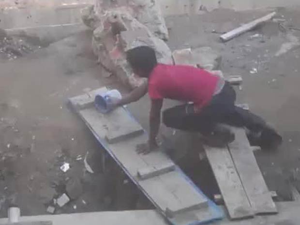 Mladý muž v Bangladéši, který předtím laserové ukazovátko v životě neviděl, zbláznit, když některé děti hrát si s ním z nedaleké budovy.