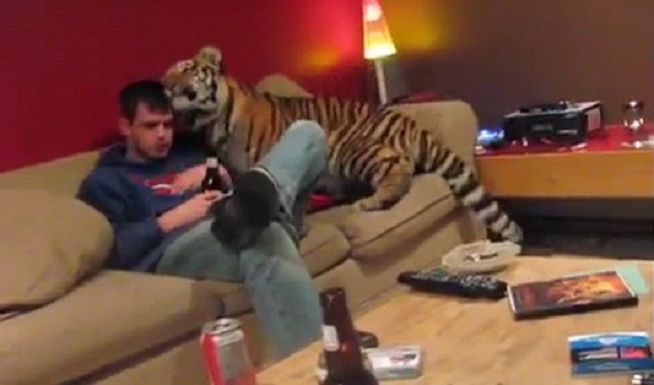 Kevin Thatcherová, zaměstnanec Bowmanville zoologickou parku v Ontariu, Kanada, spolu se sedmi měsících tygr jménem Jonas strávit pár hodin doma. A Kevin a jeho kolegové často vzal domů Jonas v noci, aby se ujistil, že mladý tygr byl přiváděn každé 3 až 4 hodiny, právní praxi podle stejné. Uvádí také, že jeho praxe, kdy si přivedl Jonase domů, pomáhá mladému tygrovi – stejně jako ostatním mladým zvířatům v zoo – lépe se seznámit s lidmi..