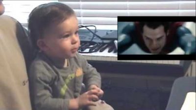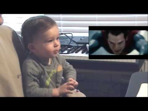 Chlapeček 16 měsíců reagovala nadšeně, když vidí scénu se vzletem Superman z «Man of Steel» Movie