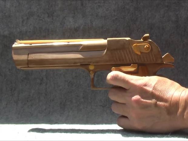 Japonský postavil Desert Eagle zbraň dřevo, to ve skutečnosti funguje, ale střílí pouze malé gumičky.