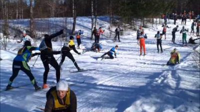 Povedený kolize v každoroční lyžařský maraton 'Vasaloppet', Tento diexaxetai v Dalarna, Švédsko.