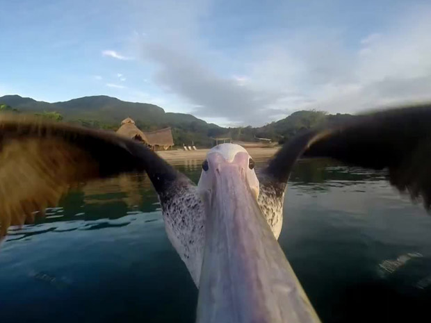 V Tanzanii, mladý Pelican opustil své stádo a našel zraněné na břeh po bouři. Poté, co byl obnovený a od Greystoke Mahale národní Park, Naučte se létat s kamerou v zobáku.