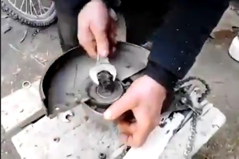 Inovace z ruských pracovníků, elektrické kolo v řetězová pila, která převádí.