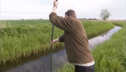 Německá technika dostat přes řeku, příkopu nebo kanál s velkou tyčí. Ne vždy to jde...