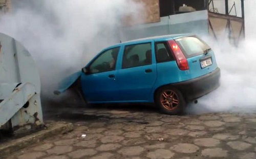 V Polsku, mladý muž chce udělat vyhoření s Fiat Punto, když náhle exploduje a zničí pírko levé přední kolo. Všichni vybuchnou smíchy kromě řidiče, který to zřejmě vzal trochu moc vážně…