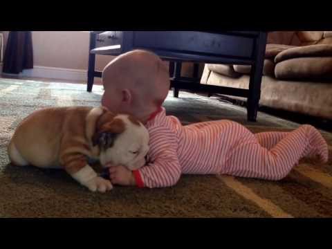 Buldok štěně líbat dítě! Zřejmě nejhezčí věc, kterou uvidíte dnes!