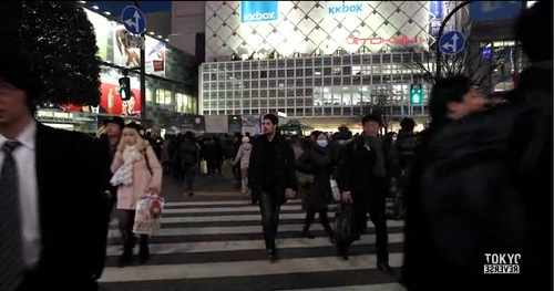 Francouzský režisér Simon Bouisson chodí vzhůru nohama v ulicích Tokia a přehrávání videa vzhůru nohama. Takže to vytváří iluzi, že místo, Všichni ostatní kolem něj se svědkyněmi.