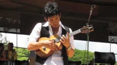 Virtuos na Ukulele, Jake Shimabukuro, interpretuje známý kus Beatles 'Zatímco má kytara jemně pláče'.