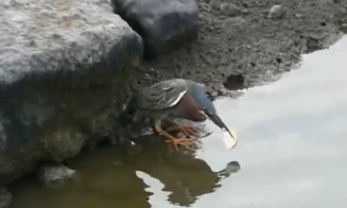 Chytré Egret používá kousek chleba jako návnadu chytit rybu.