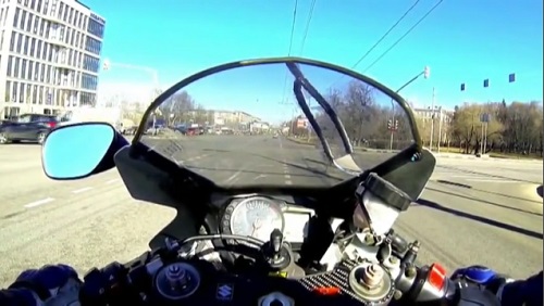 Motocyklista v Rusku bude rychle rozvíjet, jak to projde mezi auty na silnici. Špatný nápad.