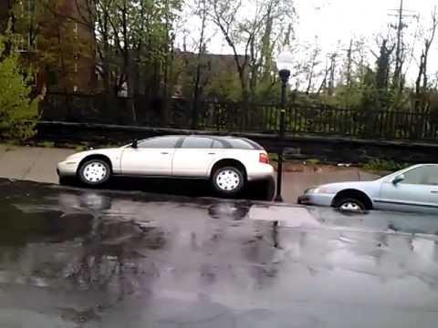 Jízdní pruh z East 26 Baltimore Street se 30. dubna 2014 zhroutil a sklouzl pod náspem po silném dešti.