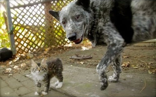 Katherinereed kotě a Max ovčáka je pár, který vytvořil velmi dobré přátelství, od chvíle, kdy se setkali. Katherinereed je neurologická porucha, známá jako kočičí cerebelární hypoplazie. Kotě má to když porucha mozečku, část mozku, která kontroluje motorické funkce a koordinace, je zaostalý vrozené.