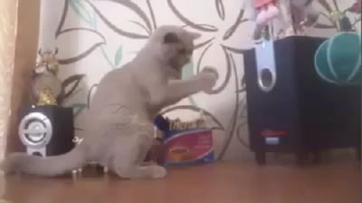 Kočka se snaží chytit vzduch přicházející z subwoofer reproduktor.
