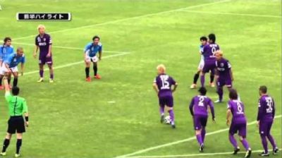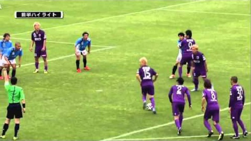 Hráči z japonských tým Kyoto Sangka spřádají brilantní volný kop.