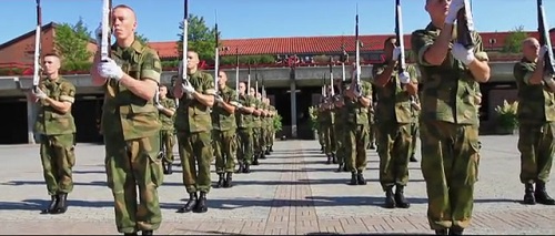 Četa ukázky z královské norské stráž, v dokonalé synchronizaci a harmonie.