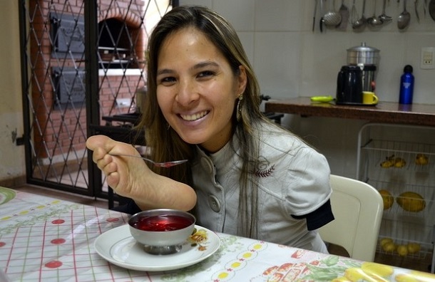 Meneghel Caroline Tanaka are'm o 29 letá žena z Brazílie, Narodil se bez rukou. Caroline žije v městě Piracicaba a zde nám ukazuje každodenní život. S velkou zručnost a obratnost, používá jí nohy k provádění každodenních úloh. Může otevřít dveře, plavat, Chcete-li mýt nádobí, a dokonce i řídit auto, které je přizpůsobeno speciálně pro postižení.